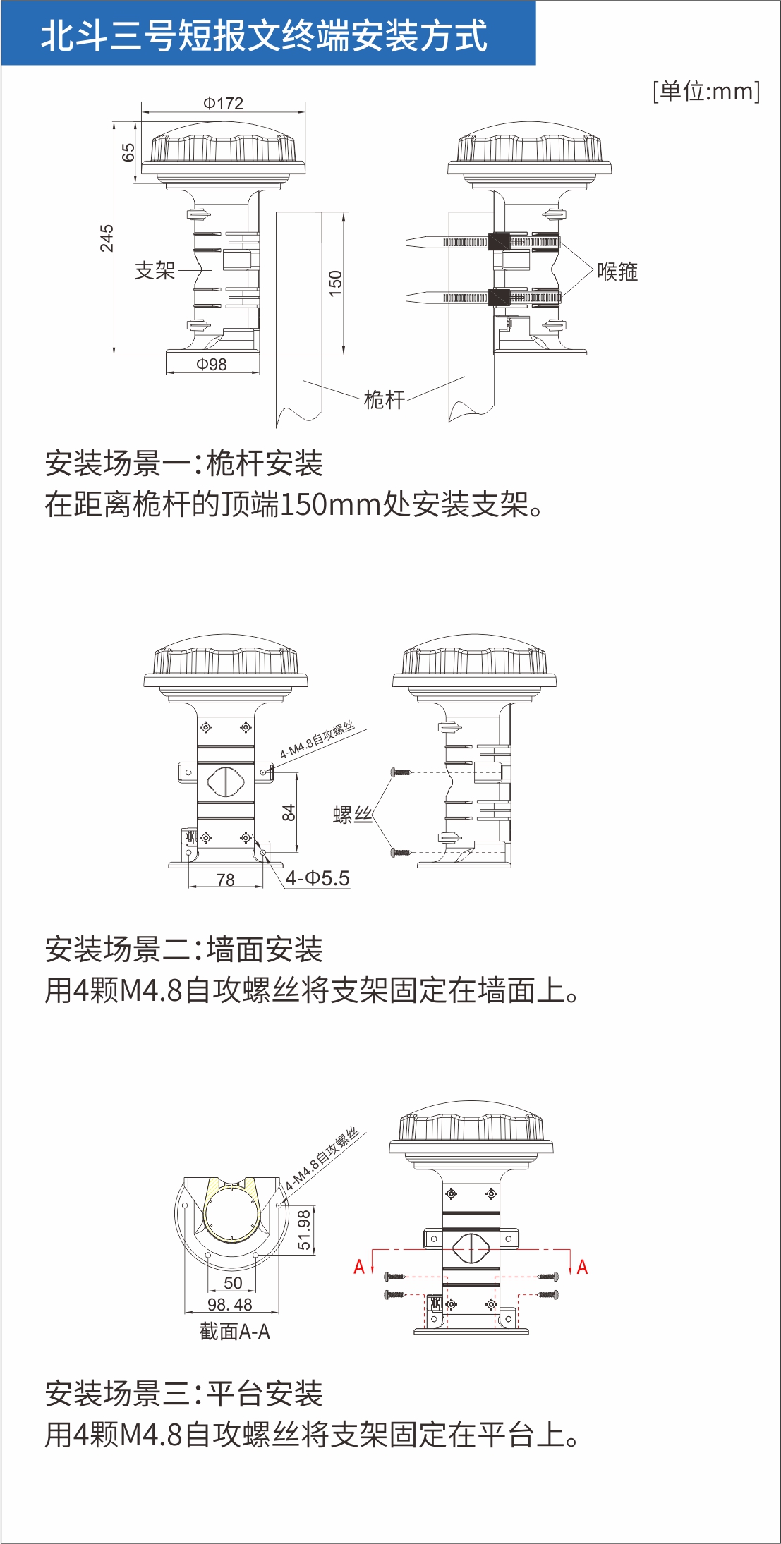 ◆ 支持北斗三号短报文通信、短报文报警、位置自动上报等功能。