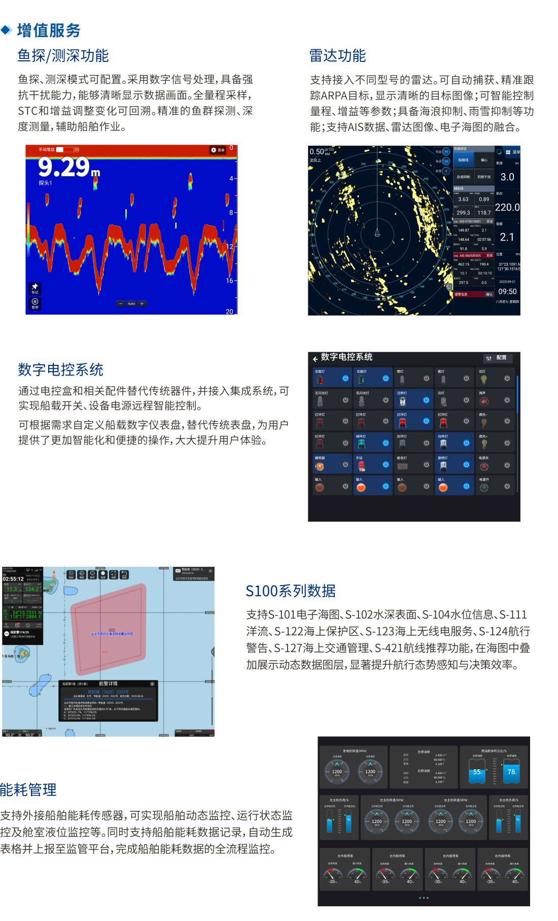 ◆ 支持选配测深功能,实现测深回波图像、水深数据的实时显示。